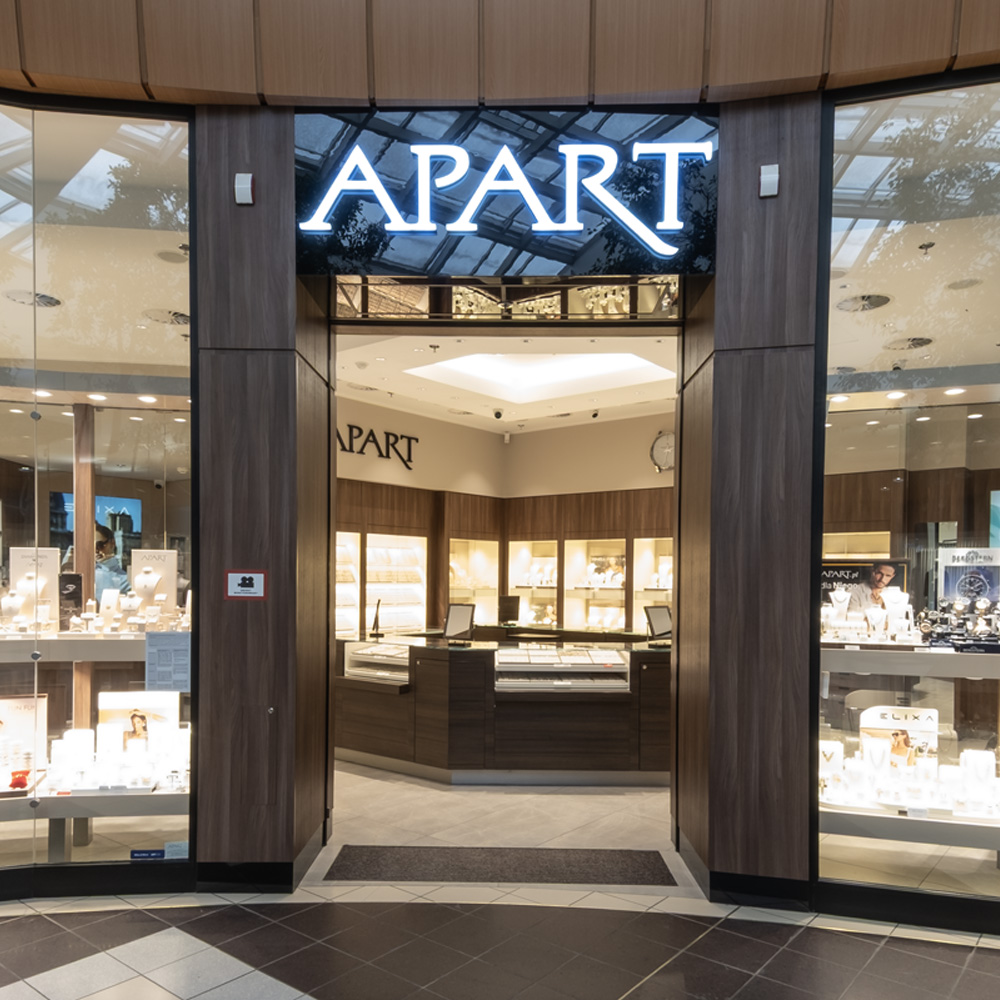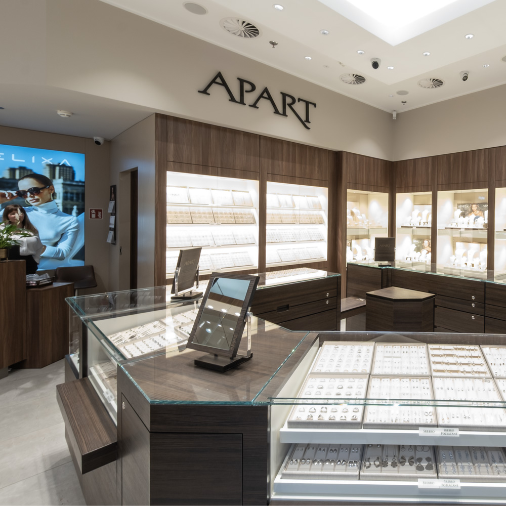 Apart to lider jubilerstwa na polskim rynku, który swoją niekwestionowaną pozycję buduje od blisko 50 lat. Marka posiada ponad 280 salonów, głównie w największych centrach handlowych w całej Polsce. Apart jest ceniony za największy wybór biżuterii z diamentami, kamieniami szlachetnymi, złotej i srebrnej; klasycznej, a także modowej. W salonach marki są dostępne zegarki luksusowe, premium i marek popularnych, a także smartwatche. Warte uwagi są obecne tylko w Apart marki Artelioni, Elixa i Aztorin z szeroką ofertą dodatków dla niej lub dla niego oraz akcesoriów, takich jak jedwabne apaszki czy okulary przeciwsłoneczne z logo Elixa. Apart to marka najchętniej wybierana przez kupujących, którzy poszukują prezentu na szczególne okazje.