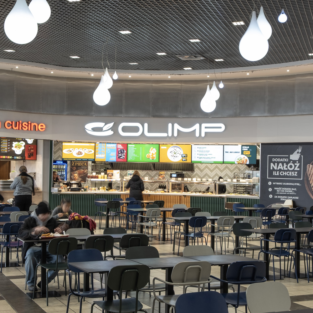 Restauracja Olimp wyróżnia się elastycznym podejściem do żywienia, oferując codziennie różnorodne potrawy kuchni europejskiej oraz sezonowe specjały. System serwowania dań na wagę pozwala klientom na swobodne komponowanie posiłków i pełną kontrolę nad ceną. W menu dostępne są także zestawy dedykowane najmłodszym gościom.