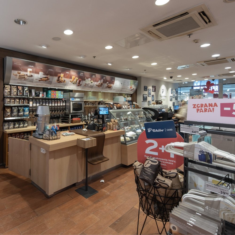 Tchibo to wyjątkowy koncept łączący bar kawowy, w którym można delektować się kawą i herbatą Mocha Italia, z ofertą handlową obejmującą zmieniające się co tydzień kolekcje. Asortyment obejmuje produkty z kategorii moda, sport, dom, ogród oraz hobby, które wyróżniają się wysoką jakością potwierdzoną certyfikatem TCM.