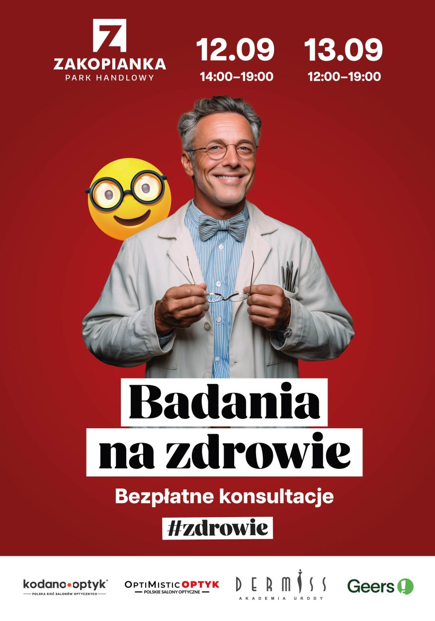 Przygotowaliśmy dla Was bezpłatne badania, konsultacje ze specjalistami oraz porady, które pomogą zadbać o zdrowie – zarówno fizyczne, jak i psychiczne. To świetna okazja, by w komfortowej przestrzeni Zakopianki skonsultować się z ekspertami, wykonać szybkie badania przesiewowe i dowiedzieć się więcej o profilaktyce zdrowotnej.